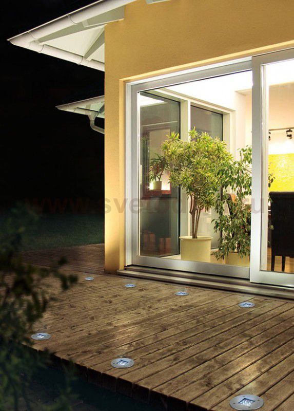 Врезные энергосберегающие парковые светильники EGLO RIGA 3 (IP67), галогенные парковые светильники EGLO RIGA 1 (IP44) и экономичные врезные светодиодные парковые светильники PARK 1 (IP67) — светильники для наружного освещения. Светильник EGLO PARK 1 (IP67) арт. 88069 — новинка 2008. Степень защиты IP67 — полная защита от пыли (пыленепроницаемый, dust-light), защита от проникновения воды при погружении (waterproof); степень защиты IP44 — защита от твердых тел > 1 мм, защита от капель и брызг. Рассеиватели тротуарных светильников 1, 2, 6, 7 — из пластика; арматура всех светильников — из нержавеющей стали, подземная часть светильников 1, 2 — пластиковая. Светильники 3, 4, 5 снабжены штырем для облегченной установки в землю. Светильники 1, 2 рассчитаны на энергосберегающую компактную люминесцентную лампу PL 15W E27, светильники 3, 4, 5 - на рефлекторную галогенную лампу GU10 220V 50W. Светильники 6, 7 имеют светодиодный модуль 12 LED 12V 1,2W; предлагаются комплекты из 3-х светильников: в комплект входят светильники, лампы и трансформатор соответствующей мощности. Цвет RIGA 3 (IP67): 1 — черный (black), 2 — нержавеющая сталь (niro); цвет RIGA 1 (IP44): 3 — белый (white), 4 — антрацит (anthracite), 5 — нержавеющая сталь (stainless steel); цвет PARK 1 (IP67): 6, 7 — никель матовый (nickel frosted).