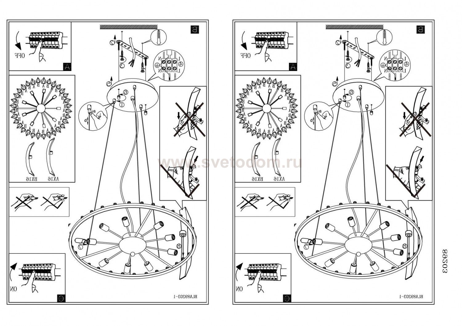 Австрийское качество модели светильника Eglo 89203 не оставит равнодушным каждого купившего! Кристаллы (хрусталь Пр-во Египет Asfour), Хромированное основание, Класс изоляции 2 (плоская вилка, двойная изоляция от вилки до лампы), IP 20, освещенность 4230 lm,Н=1100D=550,9X33W,G9.