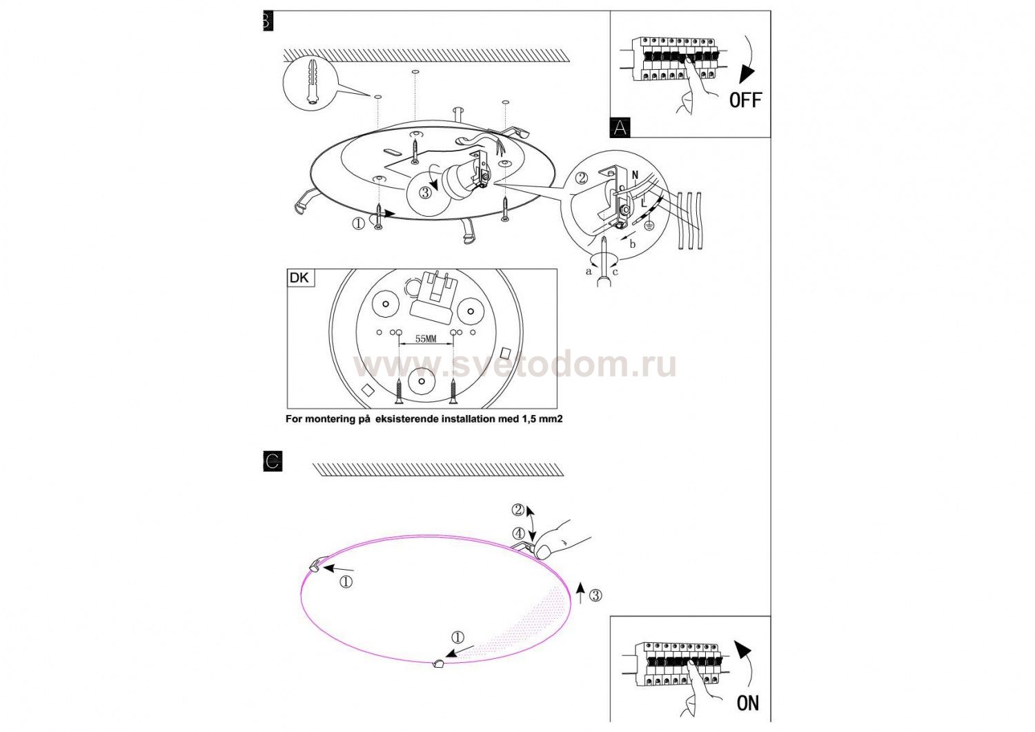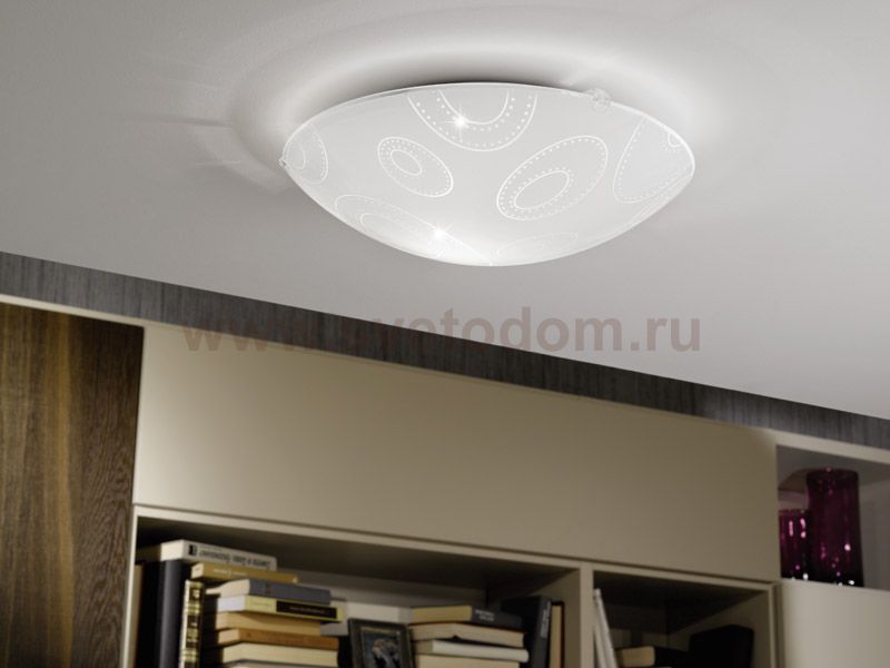 Австрийское качество модели светильника Eglo 90151 не оставит равнодушным каждого купившего! Матовое закаленное стекло(пр-во Чехия) вытравленный рисунок , основание сталь с защитным покрытием. Класс изоляции 2 (двойная изоляция), IP 20, освещенность 806 lm ,D=315,1X60W,E27.