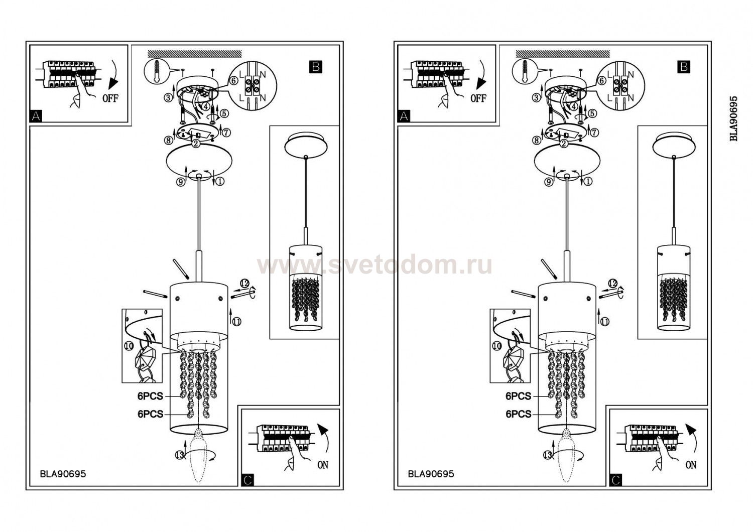 Австрийское качество модели светильника Eglo 90695 не оставит равнодушным каждого купившего! Закаленное стекло (пр-во Чехия) с кристаллами (хрусталь Пр-во Египет Asfour), стальное хромированное основание, Класс изоляции 2 (плоская вилка, двойная изоляция от вилки до лампы), IP 20, освещенность 806 lm,Н=1100D=105,1X60W,E14.