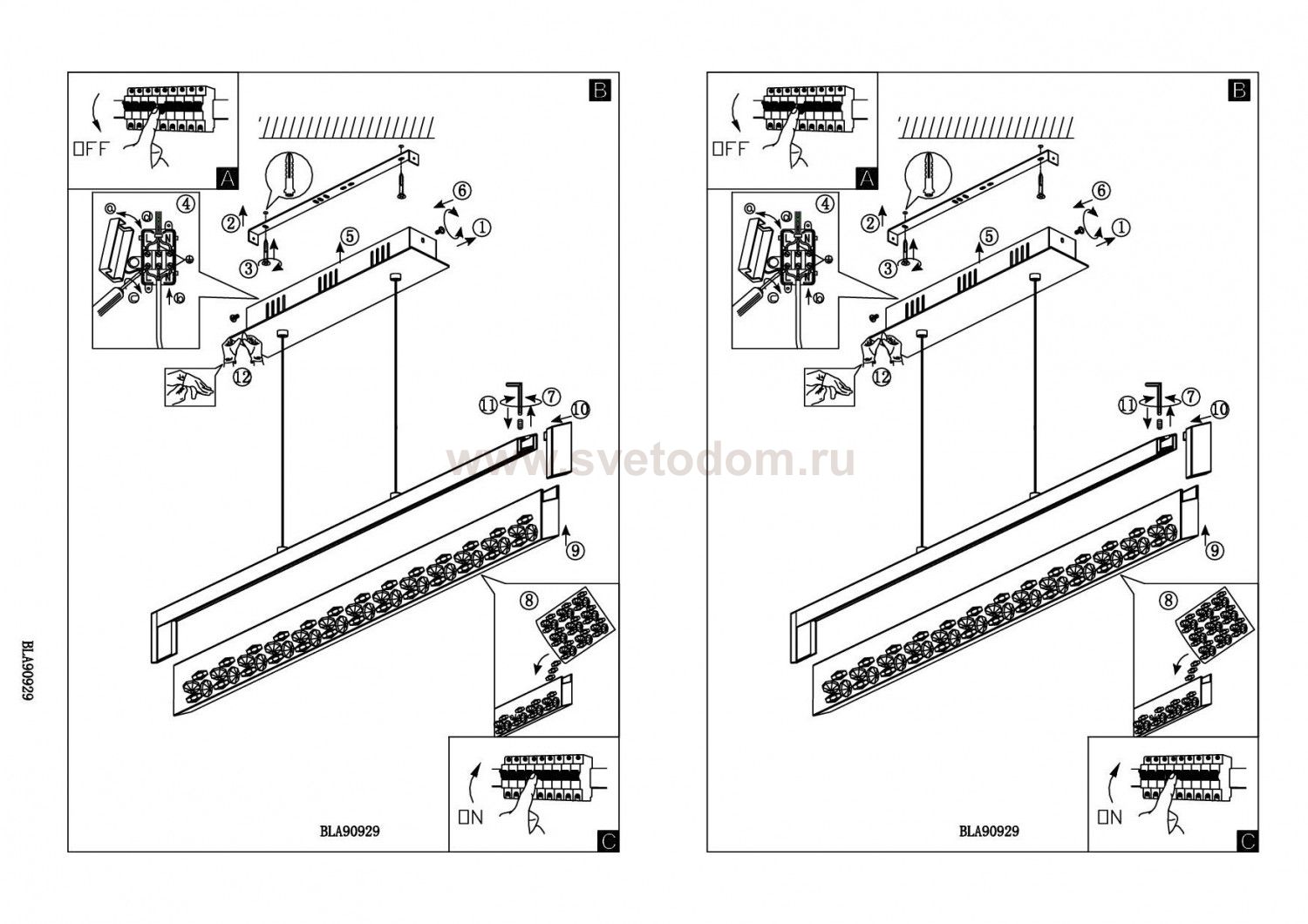 Австрийское качество модели светильника Eglo 90929 не оставит равнодушным каждого купившего! Кристаллы (хрусталь Пр-во Египет Asfour), Хромированное основание, Сменные светодиоды, Класс изоляции 2 (плоская вилка, двойная изоляция от вилки до лампы), IP 20, Экологически безопасные технологии, освещенность 3129 lm ,L=1000B=80Н=1100,6X6W (6X12 LED),LED.