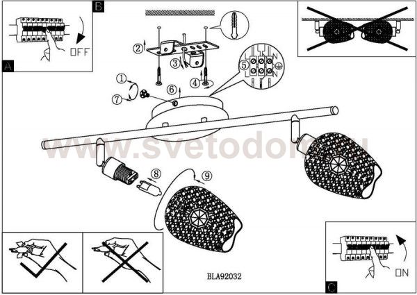 Австрийское качество модели светильника Eglo 92032 не оставит равнодушным каждого купившего! Декоративные ажурные плафоны(сталь хром) с вставками из Хрусталя(Египет), Стальной хромированный корпус, Класс изоляции 2(двойная изоляция), IP 20, Экологически безопасные технологии. освещенность 940 lm , H=95L=360,2X33W,G9.