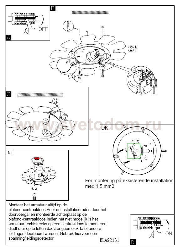 ОГРАНИЧЕНО - только с использованием энергосберегающих или светодиодных ламп, которые не нагреваются выше 60С.