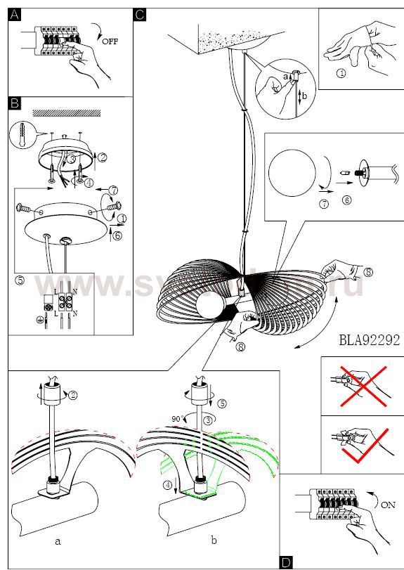 ОГРАНИЧЕНО - только с использованием энергосберегающих или светодиодных ламп, которые не нагреваются выше 60С.