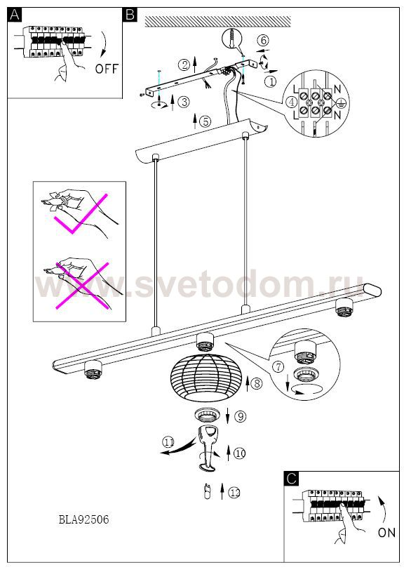 Рекомендуемая мощность 1 лампы: W