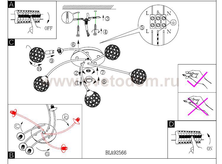 ОГРАНИЧЕНО - только с использованием энергосберегающих или светодиодных ламп, которые не нагреваются выше 60С.