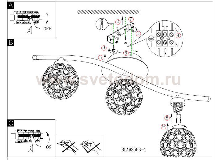 Австрийское качество модели светильника Eglo 92593 не оставит равнодушным каждого купившего! Декоративные ажурные плафоны(сталь хром) с вставками из Хрусталя(Египет), Стальной хромированный корпус, Класс изоляции 2(двойная изоляция), IP 20, Экологически безопасные технологии. Освещенность 1410 lm, H=125D=100,3X33W,G9.