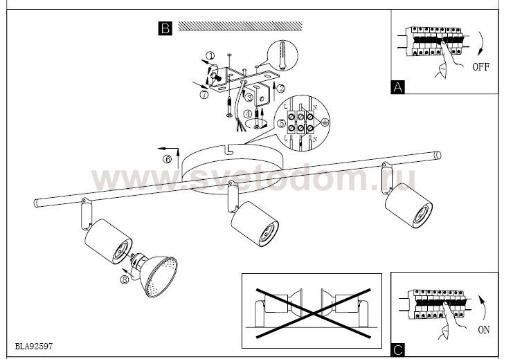 Светильники-споты – это оригинальные изделия с современным дизайном. Они позволяют не ограничивать свою фантазию при выборе освещения для интерьера. Такие модели обеспечивают достаточно качественный свет. Благодаря компактным размерам Вы можете использовать несколько спотов для одного помещения. Интернет-магазин «Светодом» предлагает необычный светильник-спот Eglo 92597 по привлекательной цене. Эта модель станет отличным дополнением к люстре, выполненной в том же стиле. Перед оформлением заказа изучите характеристики изделия. Купить светильник-спот Eglo 92597 в нашем онлайн-магазине Вы можете либо с помощью формы на сайте, либо по указанным выше телефонам. Обратите внимание, что у нас склады не только в Москве и Екатеринбурге, но и других городах России.