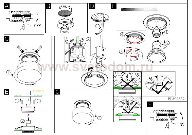 Данный размер указывает какое отверстие необходимо сделать для правильного монтажа. Зачастую светильники выбирают после ремонта и сделанных монтажных отверстий, тогда подбор осуществляется строго в размер +/- 2-5мм.