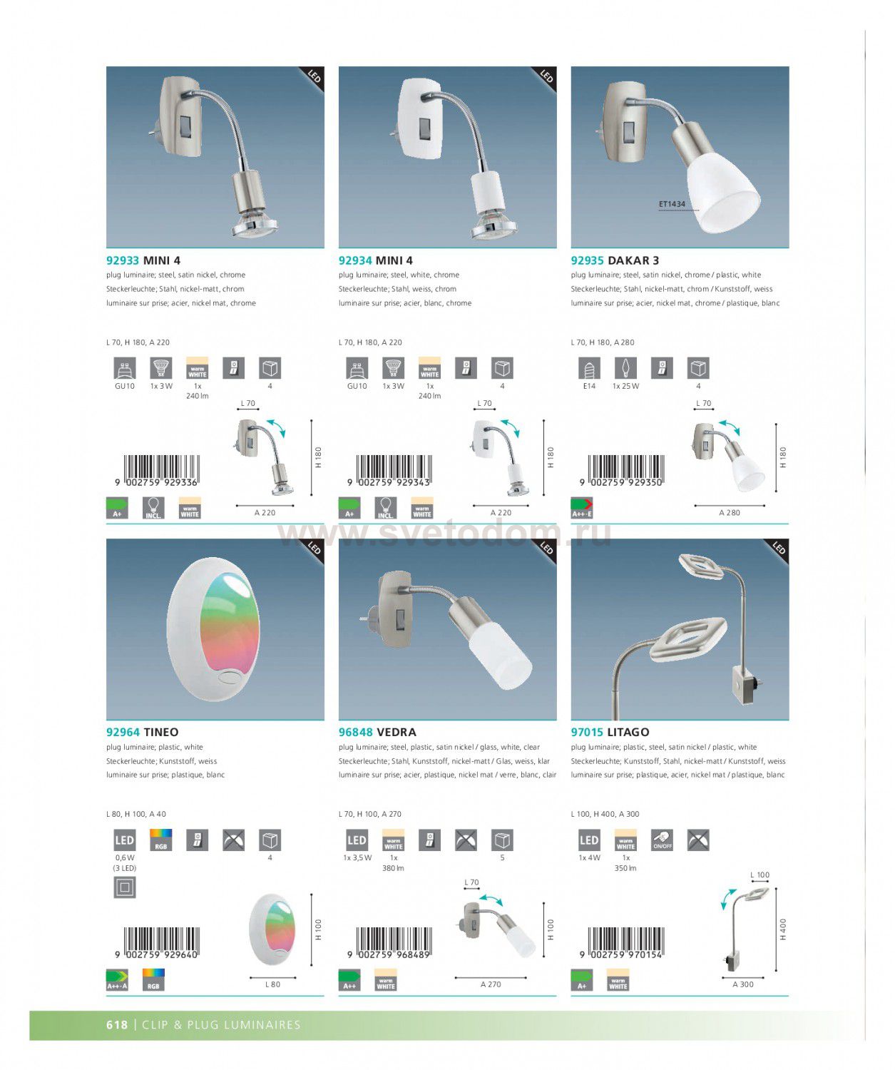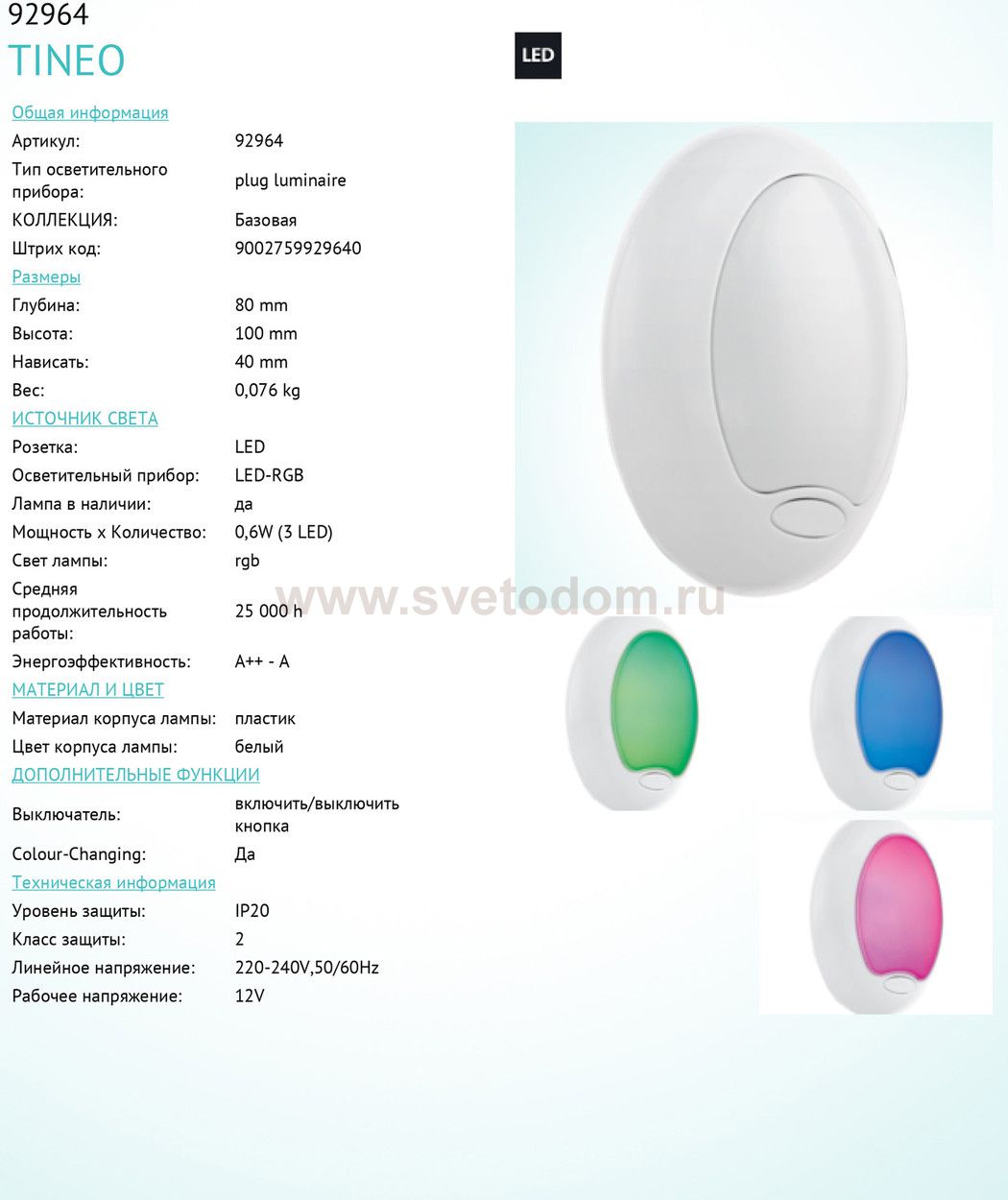 Ночник в розетку Eglo 92964 TINEO сделает Ваш интерьер современным, стильным и запоминающимся! Наиболее функционально и эстетически привлекательно модель будет смотреться в гостиной, зале, холле или другой комнате. А в комплекте с люстрой и торшером из этой же коллекции сделает интерьер по-дизайнерски профессиональным и законченным.