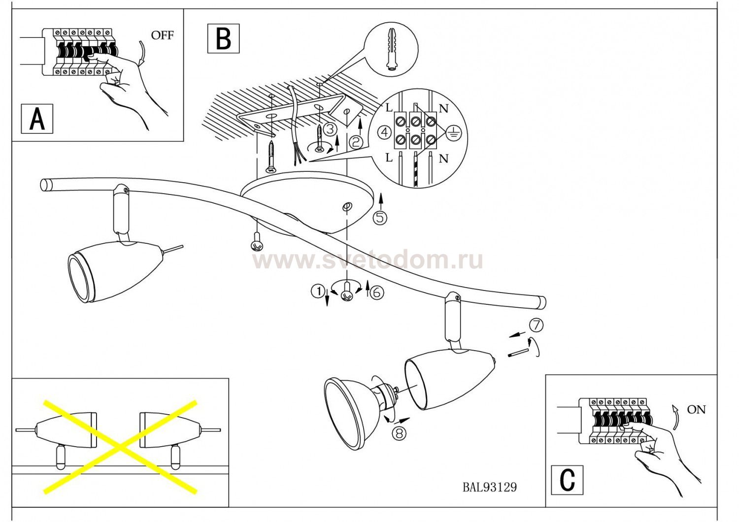Светильники-споты – это оригинальные изделия с современным дизайном. Они позволяют не ограничивать свою фантазию при выборе освещения для интерьера. Такие модели обеспечивают достаточно качественный свет. Благодаря компактным размерам Вы можете использовать несколько спотов для одного помещения. Интернет-магазин «Светодом» предлагает необычный светильник-спот Eglo 93129 по привлекательной цене. Эта модель станет отличным дополнением к люстре, выполненной в том же стиле. Перед оформлением заказа изучите характеристики изделия. Купить светильник-спот Eglo 93129 в нашем онлайн-магазине Вы можете либо с помощью формы на сайте, либо по указанным выше телефонам. Обратите внимание, что у нас склады не только в Москве и Екатеринбурге, но и других городах России.