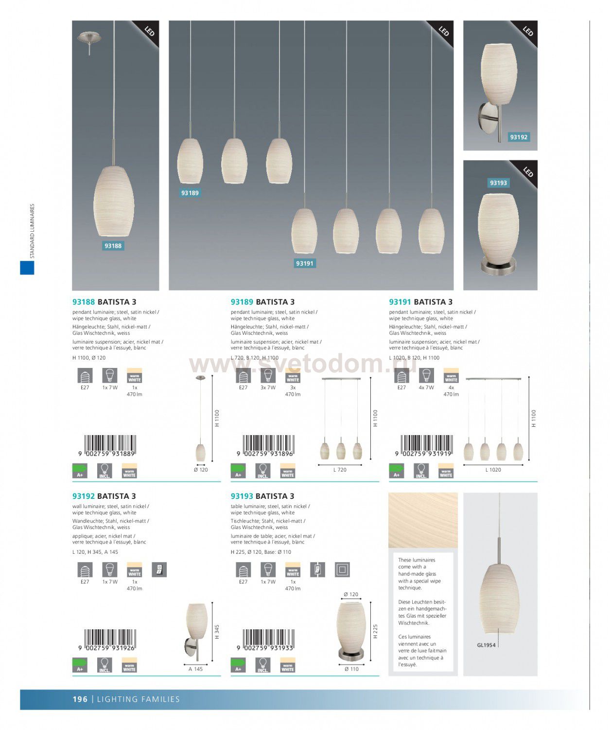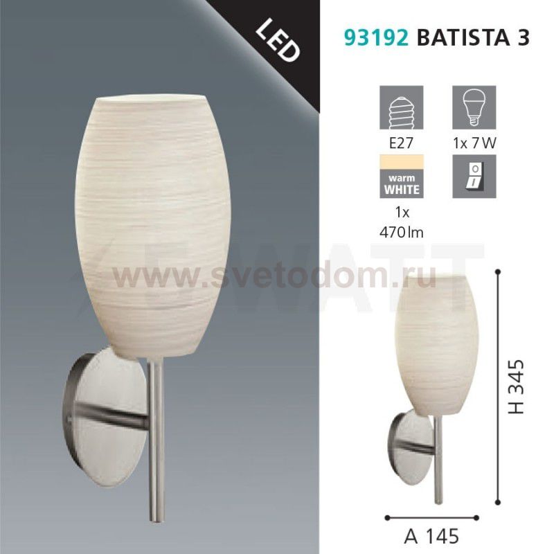 Настенно-потолочный светильник Eglo 93192 BATISTA 3 сделает Ваш интерьер современным, стильным и запоминающимся! Наиболее функционально и эстетически привлекательно модель будет смотреться в гостиной, зале, холле или другой комнате. А в комплекте с люстрой и торшером из этой же коллекции сделает интерьер по-дизайнерски профессиональным и законченным.