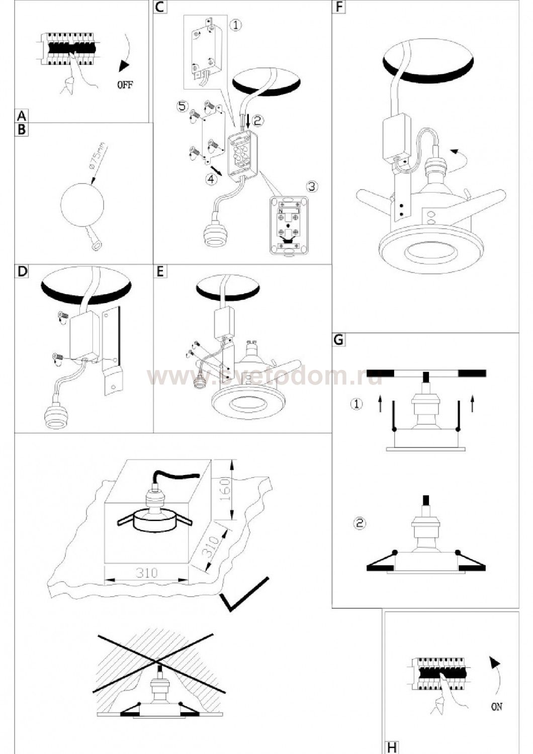 Данный размер указывает какое отверстие необходимо сделать для правильного монтажа. Зачастую светильники выбирают после ремонта и сделанных монтажных отверстий, тогда подбор осуществляется строго в размер +/- 2-5мм.