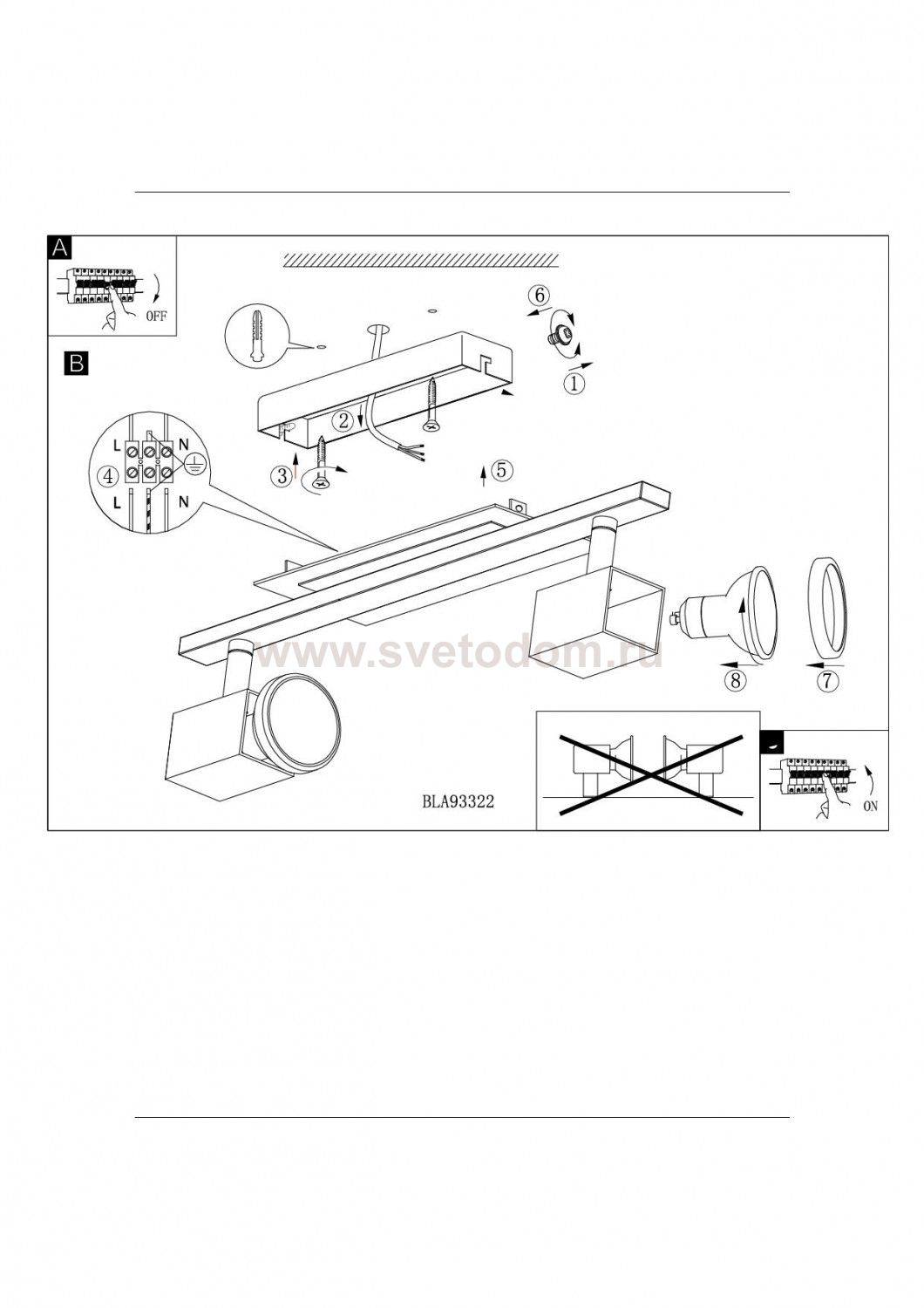 Рекомендуемая мощность 1 лампы: W