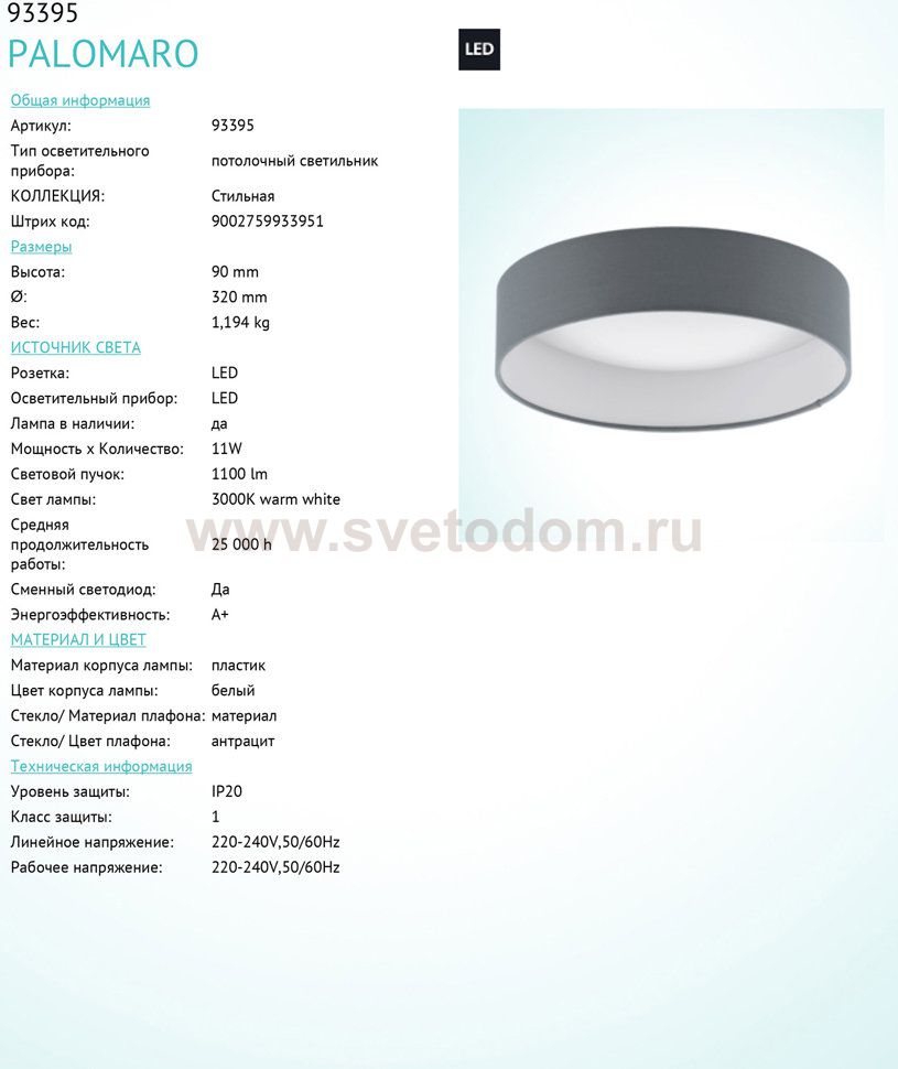 S-2332 ET1495 ET1476 Отзывы Настенно-потолочный светильник Eglo 93395 PALOMARO 320мм антрацитПока нет отзывов об этом товаре, напишите и он обязательно появится после модерации! Оставить свой отзывПохожие товары Другие товары магазина Фото
