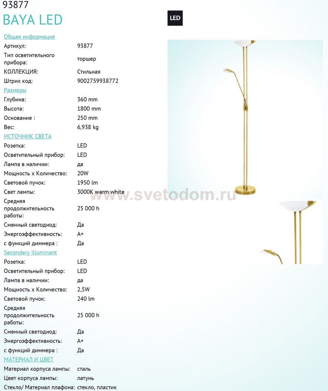 Торшер (напольный светильник) BAYA LED светодиодный диммируемый Комментарий