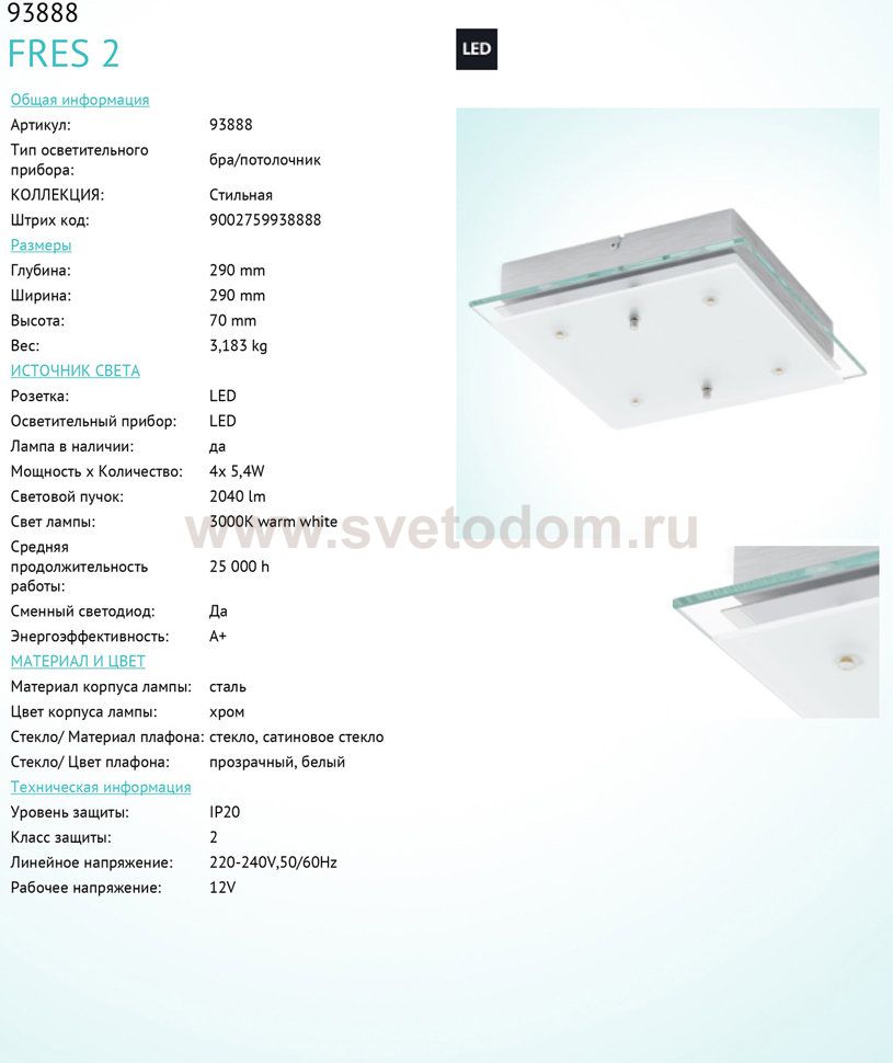 9002759938888 Отзывы Настенно-потолочный светильник Eglo 93888 FRES 2Пока нет отзывов об этом товаре, напишите и он обязательно появится после модерации! Оставить свой отзывПохожие товары Другие товары магазина Фото