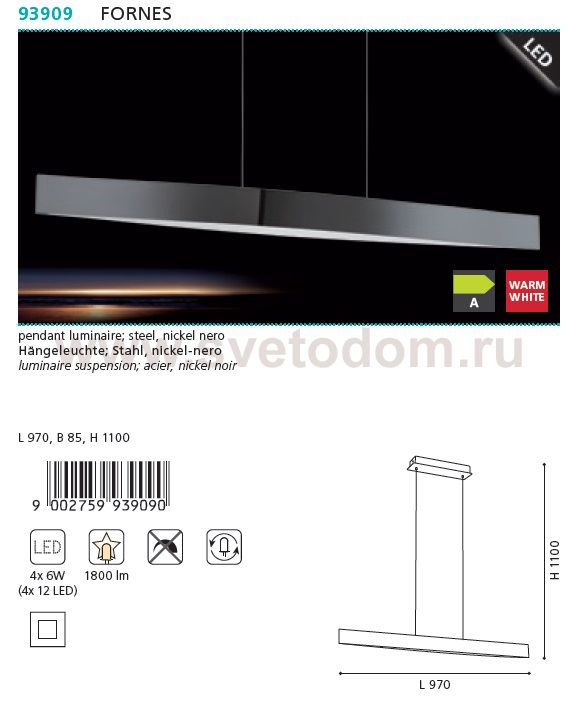 Подвесной светильник – это универсальный вариант, подходящий для любой комнаты. Сегодня производители предлагают огромный выбор таких моделей по самым разным ценам. В каталоге интернет-магазина «Светодом» мы собрали большое количество интересных и оригинальных светильников по выгодной стоимости. Вы можете приобрести их в Москве, Екатеринбурге и любом другом городе России. Подвесной светильник Eglo 93909 сразу же привлечет внимание Ваших гостей благодаря стильному исполнению. Благородный дизайн позволит использовать эту модель практически в любом интерьере. Она обеспечит достаточно света и при этом легко монтируется. Чтобы купить подвесной светильник Eglo 93909, воспользуйтесь формой на нашем сайте или позвоните менеджерам интернет-магазина.