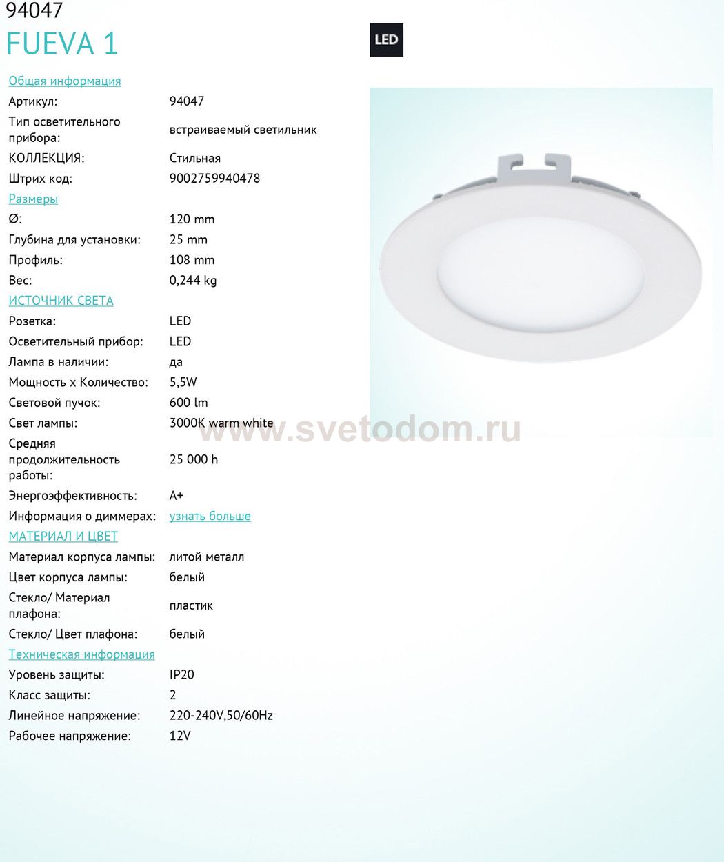 94 Отзывы Встраиваемый и накладный светильник Eglo 94047 FUEVA 1Пока нет отзывов об этом товаре, напишите и он обязательно появится после модерации! Оставить свой отзывПохожие товары Другие товары магазина Фото