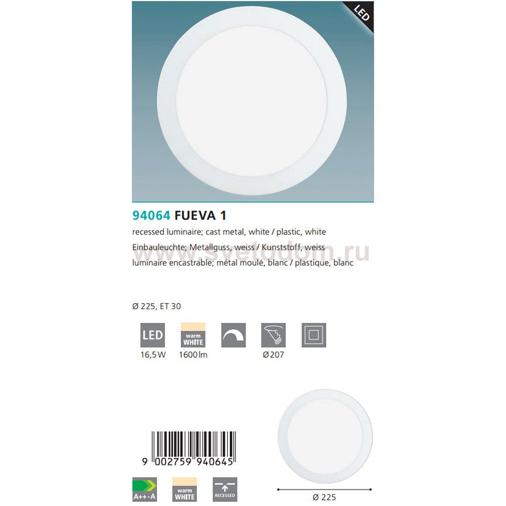Встраиваемые светильники – популярное осветительное оборудование, которое можно использовать в качестве основного источника или в дополнение к люстре. Они позволяют создать нужную атмосферу атмосферу и привнести в интерьер уют и комфорт. Интернет-магазин «Светодом» предлагает стильный встраиваемый светильник Eglo 94064. Данная модель достаточно универсальна, поэтому подойдет практически под любой интерьер. Перед покупкой не забудьте ознакомиться с техническими параметрами, чтобы узнать тип цоколя, площадь освещения и другие важные характеристики. Приобрести встраиваемый светильник Eglo 94064 в нашем онлайн-магазине Вы можете либо с помощью «Корзины», либо по контактным номерам. Мы развозим заказы по Москве, Екатеринбургу и остальным российским городам.