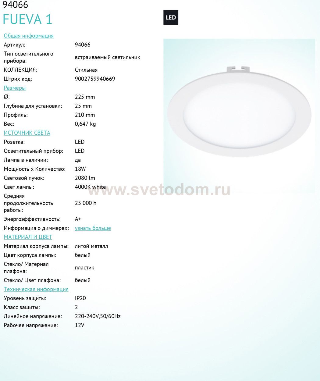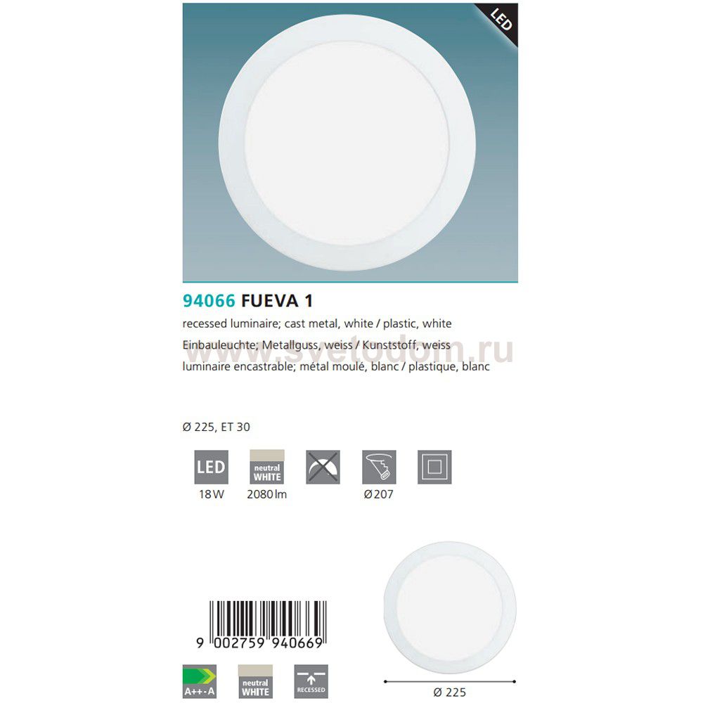 Встраиваемые светильники – популярное осветительное оборудование, которое можно использовать в качестве основного источника или в дополнение к люстре. Они позволяют создать нужную атмосферу атмосферу и привнести в интерьер уют и комфорт. Интернет-магазин «Светодом» предлагает стильный встраиваемый светильник Eglo 94066. Данная модель достаточно универсальна, поэтому подойдет практически под любой интерьер. Перед покупкой не забудьте ознакомиться с техническими параметрами, чтобы узнать тип цоколя, площадь освещения и другие важные характеристики. Приобрести встраиваемый светильник Eglo 94066 в нашем онлайн-магазине Вы можете либо с помощью «Корзины», либо по контактным номерам. Мы развозим заказы по Москве, Екатеринбургу и остальным российским городам.