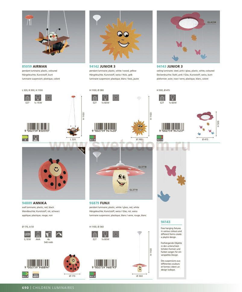 47 Отзывы Детский светильник Eglo 94142 JUNIOR 3Пока нет отзывов об этом товаре, напишите и он обязательно появится после модерации! Оставить свой отзывПохожие товары Другие товары магазина Фото