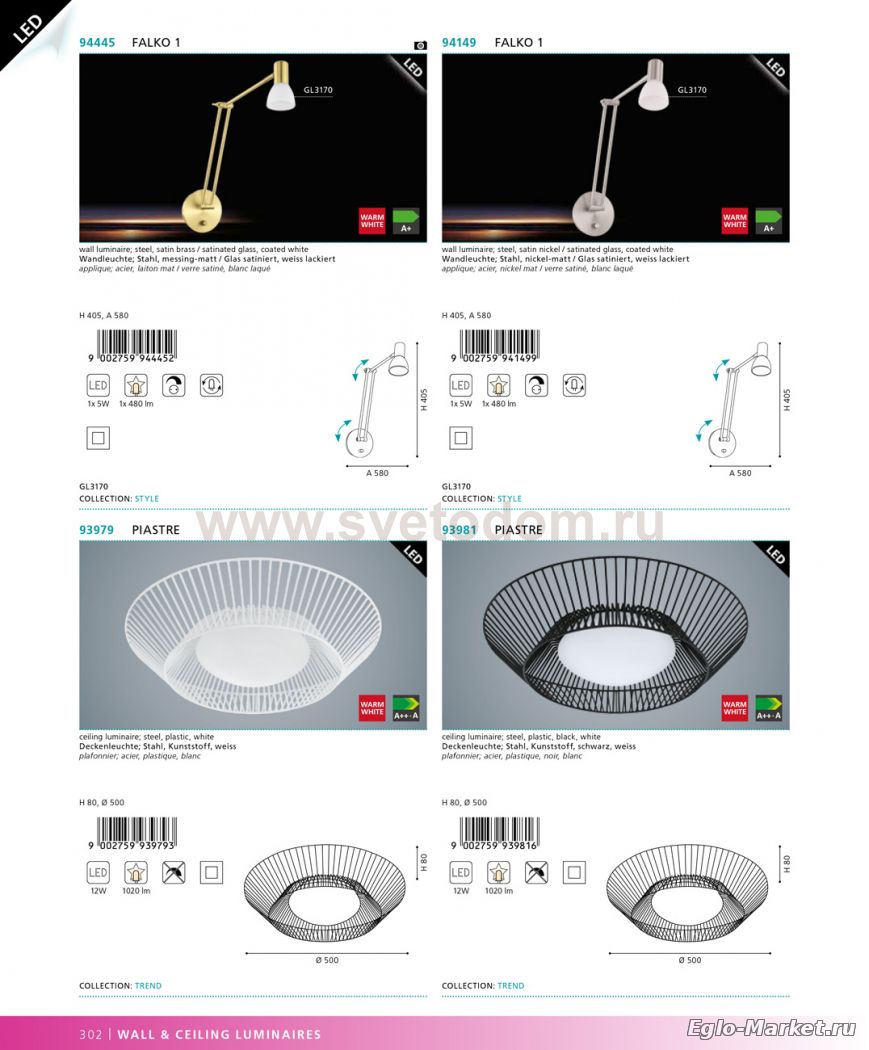 Настенно-потолочный светильник Eglo 94149 FALKO 1 сделает Ваш интерьер современным, стильным и запоминающимся! Наиболее функционально и эстетически привлекательно модель будет смотреться в гостиной, зале, холле или другой комнате. А в комплекте с люстрой и торшером из этой же коллекции сделает интерьер по-дизайнерски профессиональным и законченным.