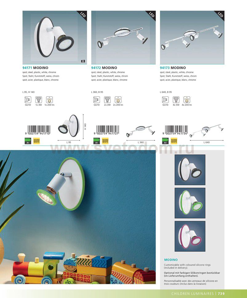 Светильники-споты – это оригинальные изделия с современным дизайном. Они позволяют не ограничивать свою фантазию при выборе освещения для интерьера. Такие модели обеспечивают достаточно качественный свет. Благодаря компактным размерам Вы можете использовать несколько спотов для одного помещения. Интернет-магазин «Светодом» предлагает необычный светильник-спот Eglo 94171 по привлекательной цене. Эта модель станет отличным дополнением к люстре, выполненной в том же стиле. Перед оформлением заказа изучите характеристики изделия. Купить светильник-спот Eglo 94171 в нашем онлайн-магазине Вы можете либо с помощью формы на сайте, либо по указанным выше телефонам. Обратите внимание, что у нас склады не только в Москве и Екатеринбурге, но и других городах России.