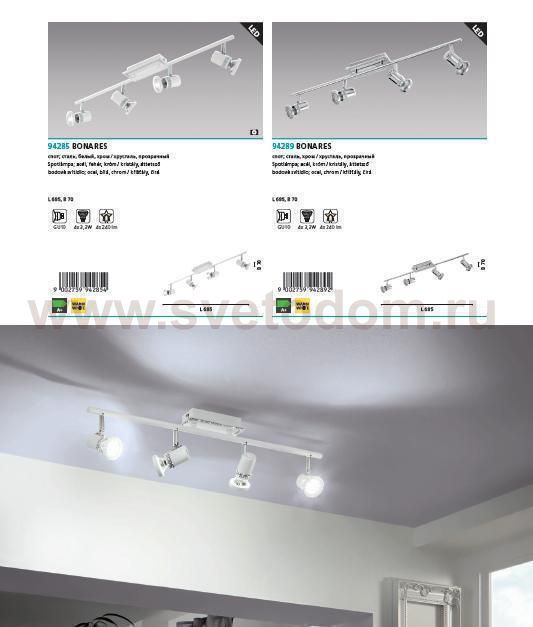 Светильники-споты – это оригинальные изделия с современным дизайном. Они позволяют не ограничивать свою фантазию при выборе освещения для интерьера. Такие модели обеспечивают достаточно качественный свет. Благодаря компактным размерам Вы можете использовать несколько спотов для одного помещения. Интернет-магазин «Светодом» предлагает необычный светильник-спот Eglo 94285 по привлекательной цене. Эта модель станет отличным дополнением к люстре, выполненной в том же стиле. Перед оформлением заказа изучите характеристики изделия. Купить светильник-спот Eglo 94285 в нашем онлайн-магазине Вы можете либо с помощью формы на сайте, либо по указанным выше телефонам. Обратите внимание, что у нас склады не только в Москве и Екатеринбурге, но и других городах России.