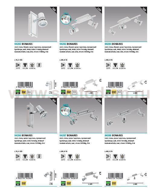 Светильники-споты – это оригинальные изделия с современным дизайном. Они позволяют не ограничивать свою фантазию при выборе освещения для интерьера. Такие модели обеспечивают достаточно качественный свет. Благодаря компактным размерам Вы можете использовать несколько спотов для одного помещения. Интернет-магазин «Светодом» предлагает необычный светильник-спот Eglo 94288 по привлекательной цене. Эта модель станет отличным дополнением к люстре, выполненной в том же стиле. Перед оформлением заказа изучите характеристики изделия. Купить светильник-спот Eglo 94288 в нашем онлайн-магазине Вы можете либо с помощью формы на сайте, либо по указанным выше телефонам. Обратите внимание, что у нас склады не только в Москве и Екатеринбурге, но и других городах России.