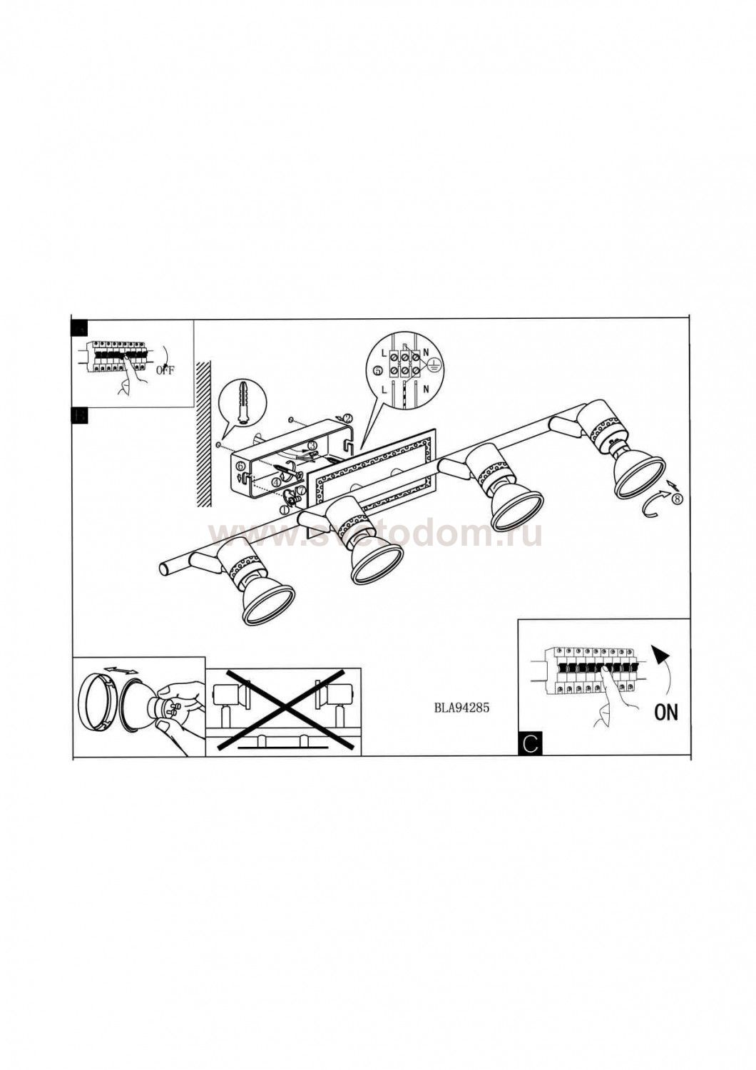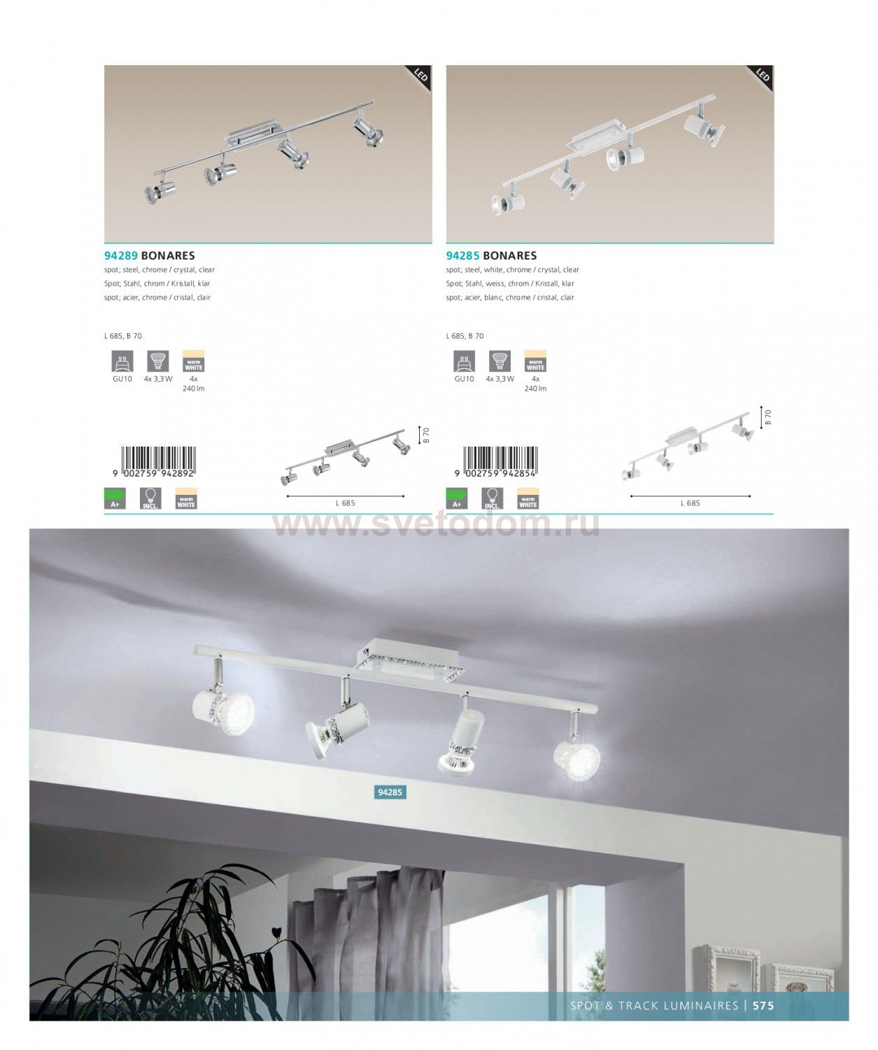 Светильники-споты – это оригинальные изделия с современным дизайном. Они позволяют не ограничивать свою фантазию при выборе освещения для интерьера. Такие модели обеспечивают достаточно качественный свет. Благодаря компактным размерам Вы можете использовать несколько спотов для одного помещения. Интернет-магазин «Светодом» предлагает необычный светильник-спот Eglo 94289 по привлекательной цене. Эта модель станет отличным дополнением к люстре, выполненной в том же стиле. Перед оформлением заказа изучите характеристики изделия. Купить светильник-спот Eglo 94289 в нашем онлайн-магазине Вы можете либо с помощью формы на сайте, либо по указанным выше телефонам. Обратите внимание, что у нас склады не только в Москве и Екатеринбурге, но и других городах России.