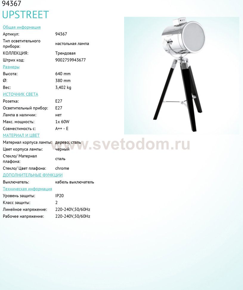 Настольная лампа – это не просто источник дополнительного освещения, но и оригинальный элемент декора. Его можно установить в спальне, гостиной, кабинете и других комнатах. Интернет-магазин «Светодом» предлагает настольные лампы разных стилей по доступным ценам. Благодаря большому ассортименту Вы обязательно найдете в нашем каталоге именно ту модель, которую искали. Настольная лампа Eglo 94367 – прекрасный вариант для завершения интерьера. Ее можно включить одновременно с люстрой для более яркого освещения или без нее для создания уютной атмосферы, настраивающей на отдых. Купить настольную лампу Eglo 94367 Вы можете с помощью виртуальной «Корзины» или по контактным номерам, указанным на сайте.