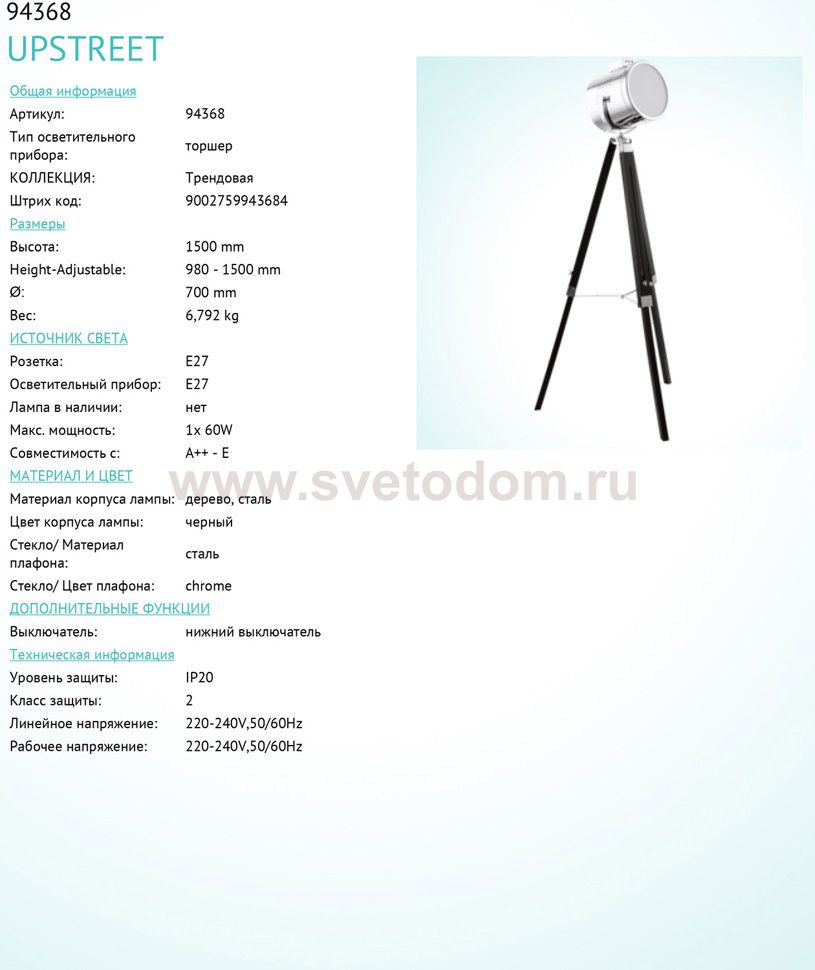 Торшер (напольный светильник) UPSTREET Комментарий