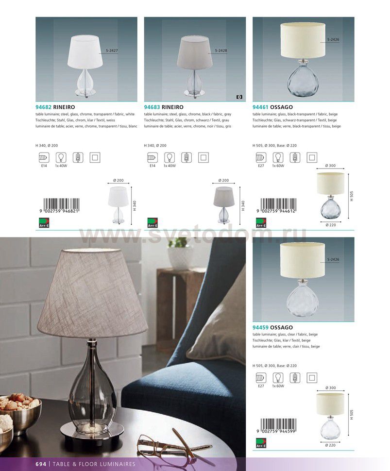 Настольная лампа – это не просто источник дополнительного освещения, но и оригинальный элемент декора. Его можно установить в спальне, гостиной, кабинете и других комнатах. Интернет-магазин «Светодом» предлагает настольные лампы разных стилей по доступным ценам. Благодаря большому ассортименту Вы обязательно найдете в нашем каталоге именно ту модель, которую искали. Настольная лампа Eglo 94459 – прекрасный вариант для завершения интерьера. Ее можно включить одновременно с люстрой для более яркого освещения или без нее для создания уютной атмосферы, настраивающей на отдых. Купить настольную лампу Eglo 94459 Вы можете с помощью виртуальной «Корзины» или по контактным номерам, указанным на сайте.