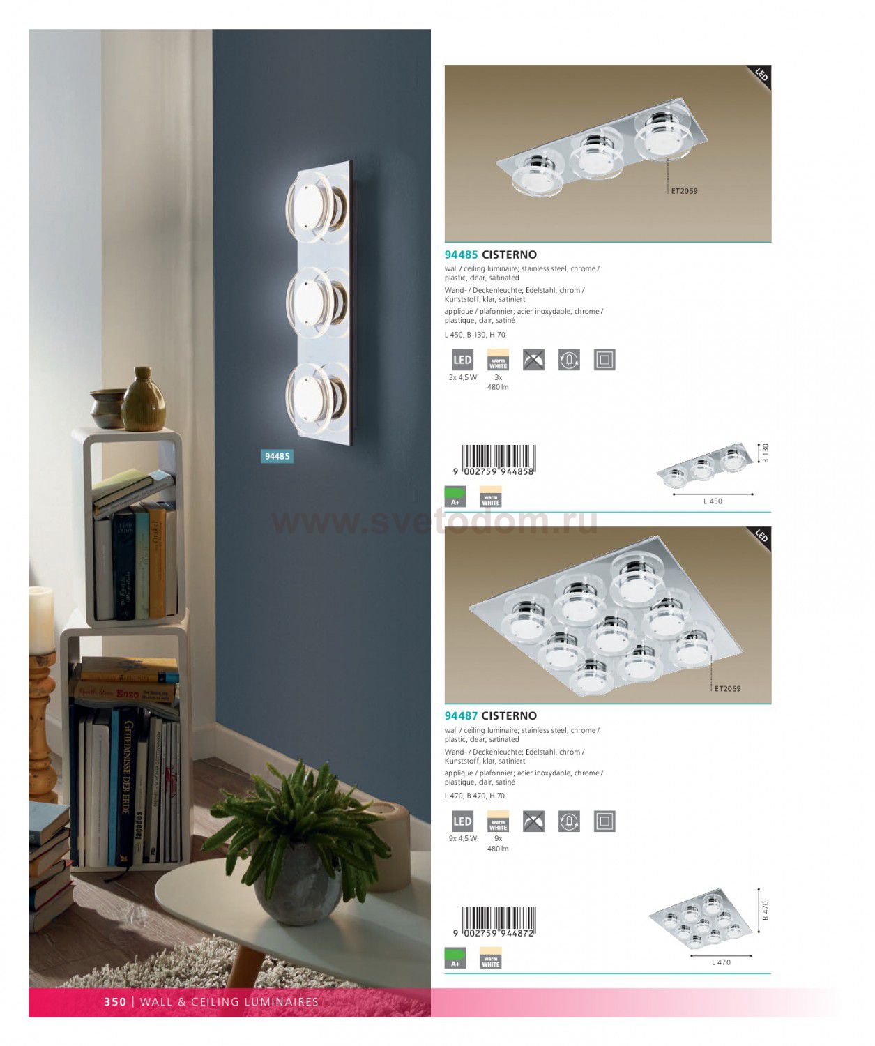 Настенно-потолочные светильники – это универсальные осветительные варианты, которые подходят для вертикального и горизонтального монтажа. В интернет-магазине «Светодом» Вы можете приобрести подобные модели по выгодной стоимости. В нашем каталоге представлены как бюджетные варианты, так и эксклюзивные изделия от производителей, которые уже давно заслужили доверие дизайнеров и простых покупателей. Настенно-потолочный светильник Eglo 94485 станет прекрасным дополнением к основному освещению. Благодаря качественному исполнению и применению современных технологий при производстве эта модель будет радовать Вас своим привлекательным внешним видом долгое время. Приобрести настенно-потолочный светильник Eglo 94485 можно, находясь в любой точке России.