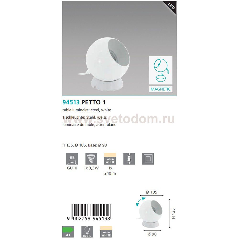 Настольная лампа – это не просто источник дополнительного освещения, но и оригинальный элемент декора. Его можно установить в спальне, гостиной, кабинете и других комнатах. Интернет-магазин «Светодом» предлагает настольные лампы разных стилей по доступным ценам. Благодаря большому ассортименту Вы обязательно найдете в нашем каталоге именно ту модель, которую искали. Настольная лампа Eglo 94513 – прекрасный вариант для завершения интерьера. Ее можно включить одновременно с люстрой для более яркого освещения или без нее для создания уютной атмосферы, настраивающей на отдых. Купить настольную лампу Eglo 94513 Вы можете с помощью виртуальной «Корзины» или по контактным номерам, указанным на сайте.