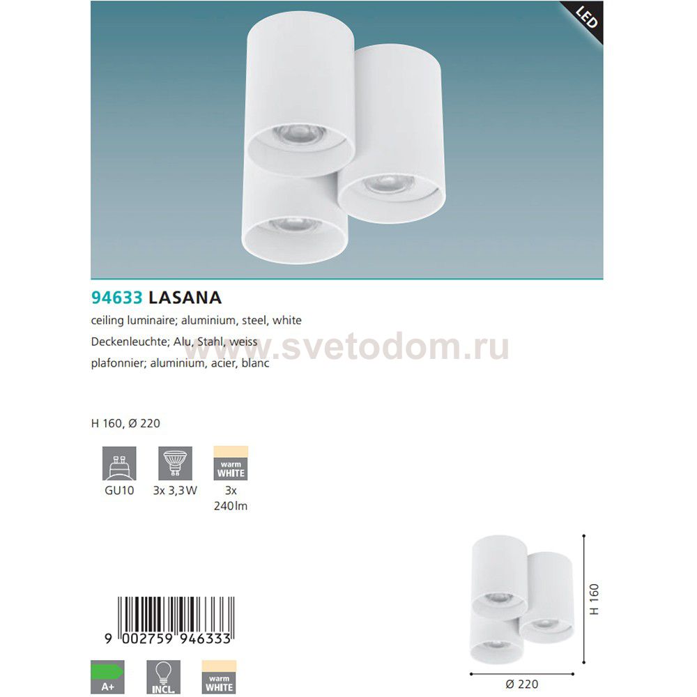 8 Отзывы Настенно-потолочный светильник Eglo 94633 LASANAПока нет отзывов об этом товаре, напишите и он обязательно появится после модерации! Оставить свой отзывПохожие товары Другие товары магазина Фото