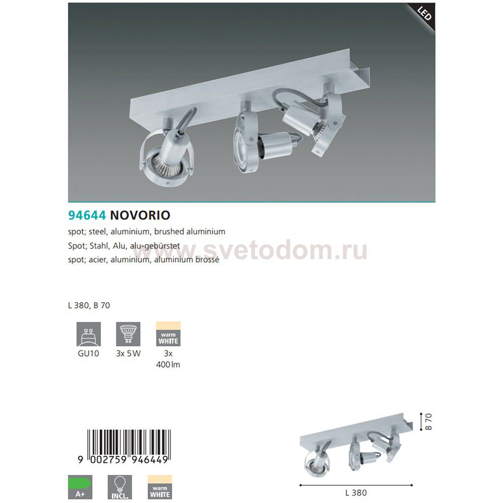Светильники-споты – это оригинальные изделия с современным дизайном. Они позволяют не ограничивать свою фантазию при выборе освещения для интерьера. Такие модели обеспечивают достаточно качественный свет. Благодаря компактным размерам Вы можете использовать несколько спотов для одного помещения. Интернет-магазин «Светодом» предлагает необычный светильник-спот Eglo 94644 по привлекательной цене. Эта модель станет отличным дополнением к люстре, выполненной в том же стиле. Перед оформлением заказа изучите характеристики изделия. Купить светильник-спот Eglo 94644 в нашем онлайн-магазине Вы можете либо с помощью формы на сайте, либо по указанным выше телефонам. Обратите внимание, что у нас склады не только в Москве и Екатеринбурге, но и других городах России.