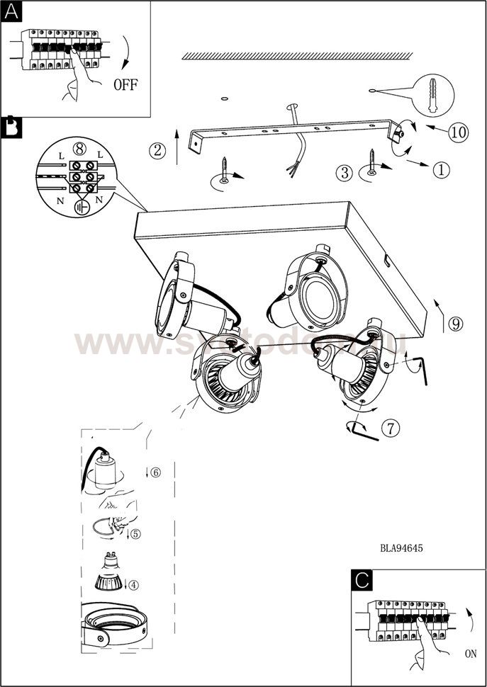 Светильники-споты – это оригинальные изделия с современным дизайном. Они позволяют не ограничивать свою фантазию при выборе освещения для интерьера. Такие модели обеспечивают достаточно качественный свет. Благодаря компактным размерам Вы можете использовать несколько спотов для одного помещения. Интернет-магазин «Светодом» предлагает необычный светильник-спот Eglo 94649 по привлекательной цене. Эта модель станет отличным дополнением к люстре, выполненной в том же стиле. Перед оформлением заказа изучите характеристики изделия. Купить светильник-спот Eglo 94649 в нашем онлайн-магазине Вы можете либо с помощью формы на сайте, либо по указанным выше телефонам. Обратите внимание, что у нас склады не только в Москве и Екатеринбурге, но и других городах России.
