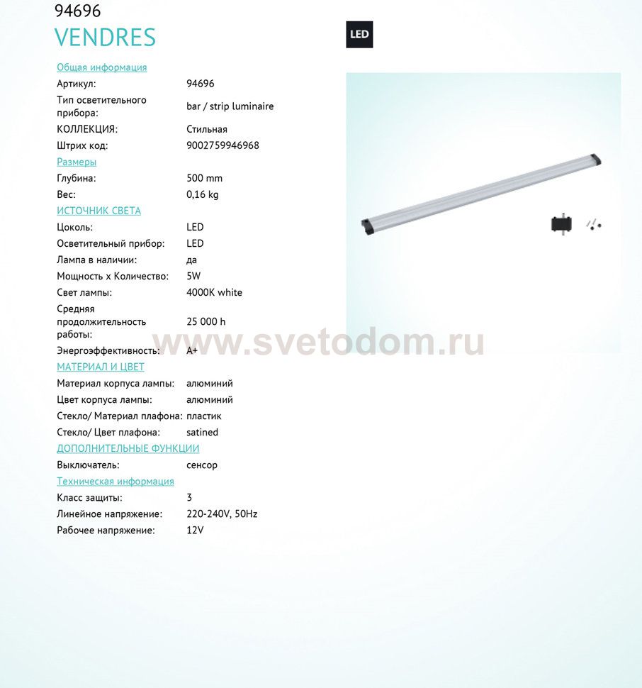 Система светодиодной ленты VENDRES Комментарий
