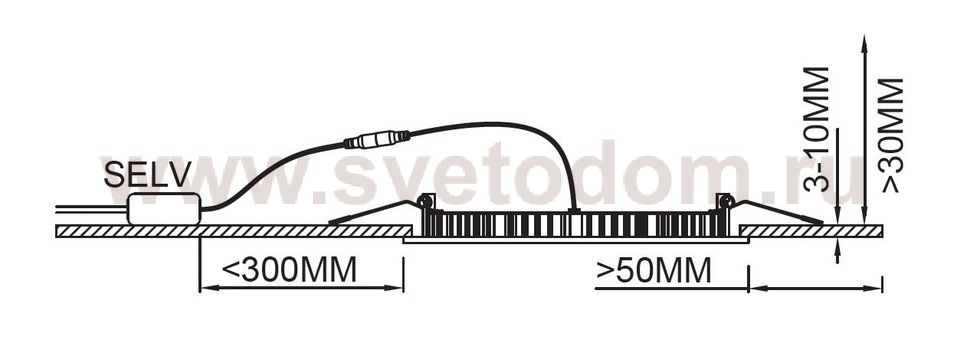 Данный размер указывает какое отверстие необходимо сделать для правильного монтажа. Зачастую светильники выбирают после ремонта и сделанных монтажных отверстий, тогда подбор осуществляется строго в размер +/- 2-5мм.