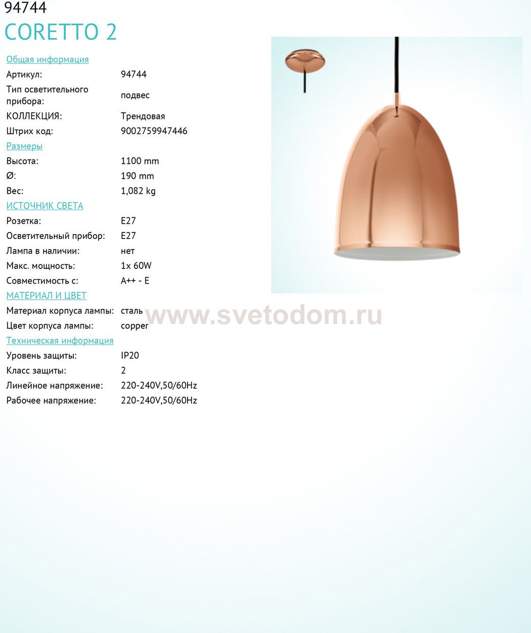 Компания «Светодом» предлагает широкий ассортимент люстр от известных производителей. Представленные в нашем каталоге товары выполнены из современных материалов и обладают отличным качеством. Благодаря широкому ассортименту Вы сможете найти у нас люстру под любой интерьер. Мы предлагаем как классические варианты, так и современные модели, отличающиеся лаконичностью и простотой форм. Стильная люстра Eglo 94744 станет украшением любого дома. Эта модель от известного производителя не оставит равнодушным ценителей красивых и оригинальных предметов интерьера. Люстра Eglo 94744 обеспечит равномерное распределение света по всей комнате. При выборе обратите внимание на характеристики, позволяющие приобрести наиболее подходящую модель. Купить понравившуюся люстру по доступной цене Вы можете в интернет-магазине «Светодом».