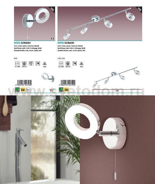Светильник поворотный спот Eglo 94756 GONARO сделает Ваш интерьер современным, стильным и запоминающимся! Наиболее функционально и эстетически привлекательно модель будет смотреться в гостиной, зале, холле или другой комнате. А в комплекте с люстрой и торшером из этой же коллекции сделает интерьер по-дизайнерски профессиональным и законченным.