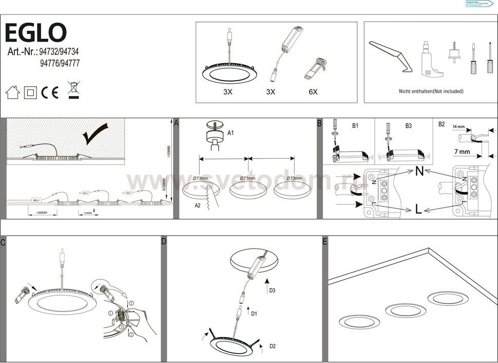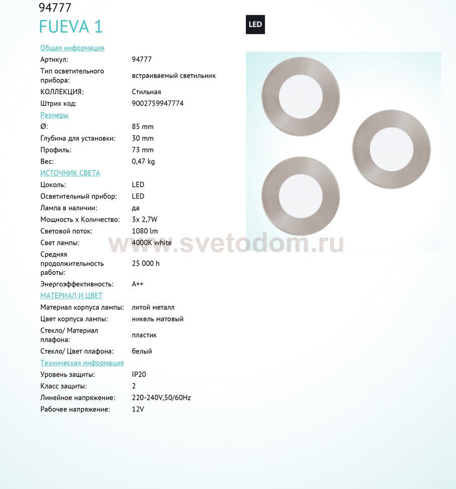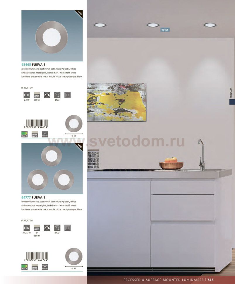 Комплект Светодиодный встраив. светильников FUEVA 1, 3х2,7W (LED) 4000K, ?85, никель применяется преимущественно в домашнем освещении с использованием стандартных выключателей и переключателей для сетей 220V.