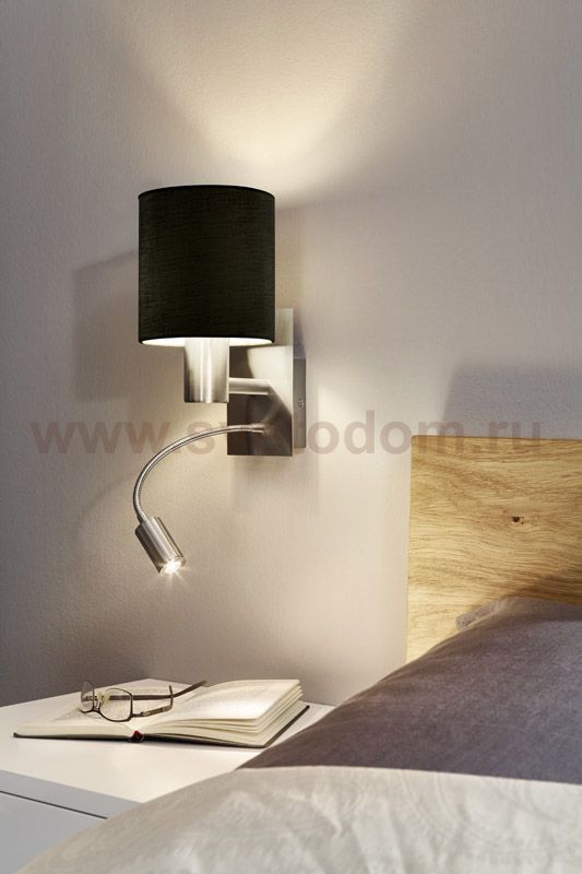 Бра PASTERI со Светодиодный подсветкой для чтения, 1х40W (E27), 1х2,4W (LED), L150, H380, никель матовый/текстиль, серо-коричневый применяется преимущественно в домашнем освещении с использованием стандартных выключателей и переключателей для сетей 220V.