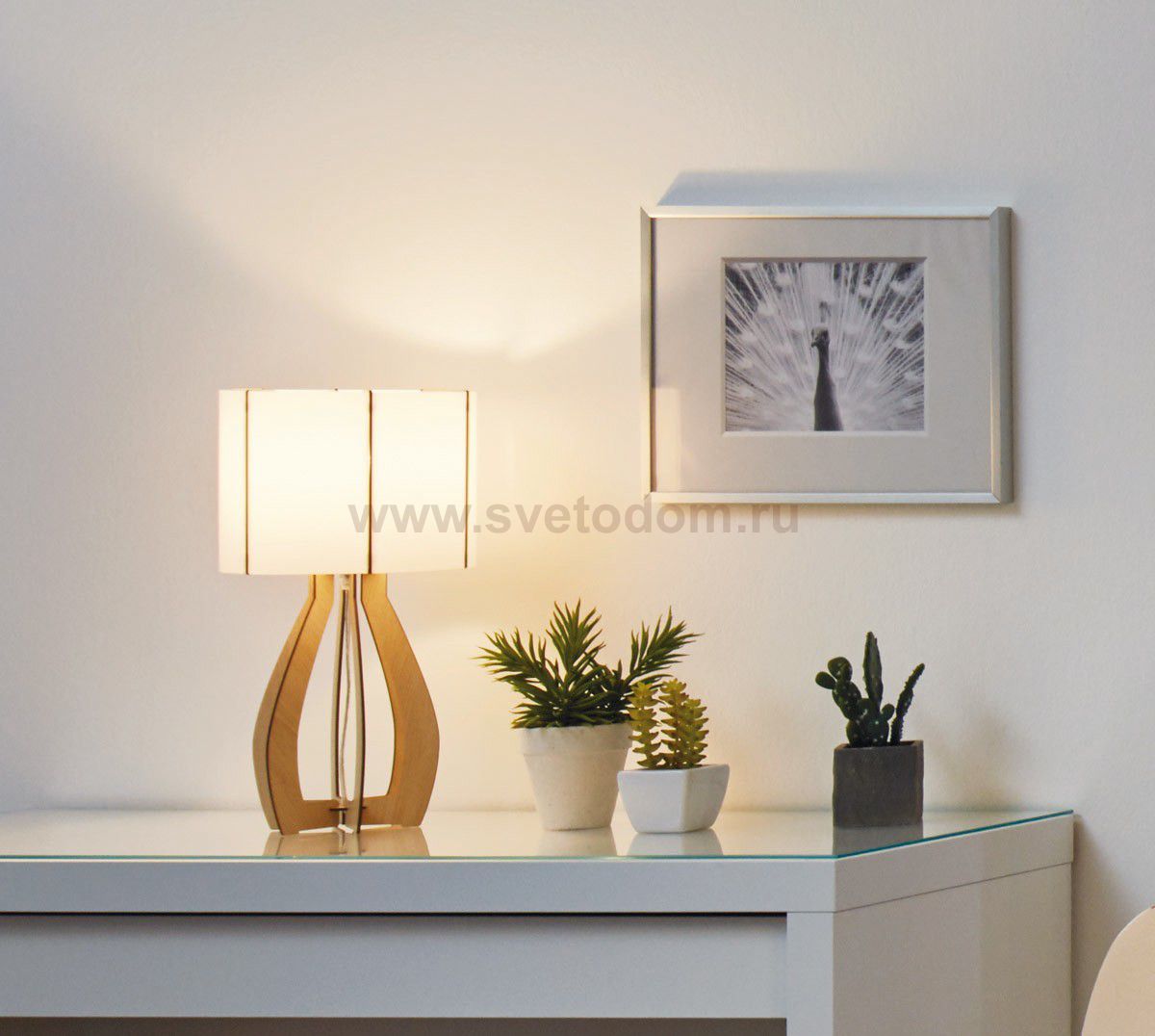 Настольная лампа COSSANO, 1x60W (E27), ?225, H450, дерево, клен/пластик, белый применяется преимущественно в домашнем освещении с использованием стандартных выключателей и переключателей для сетей 220V.
