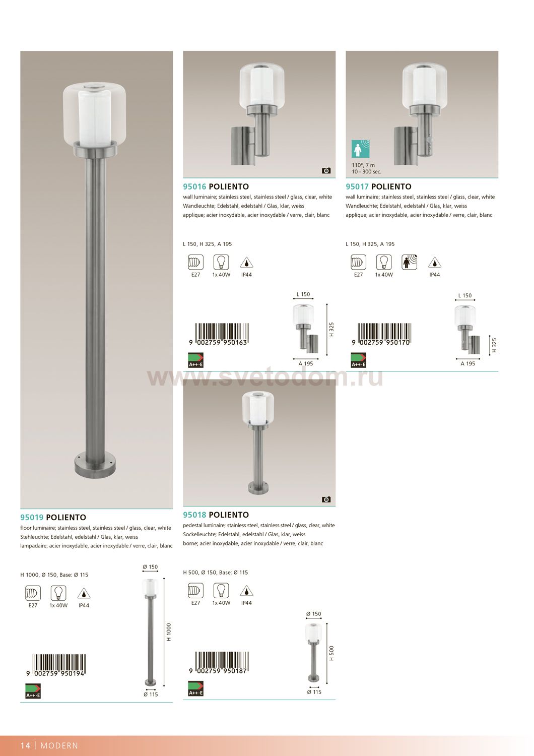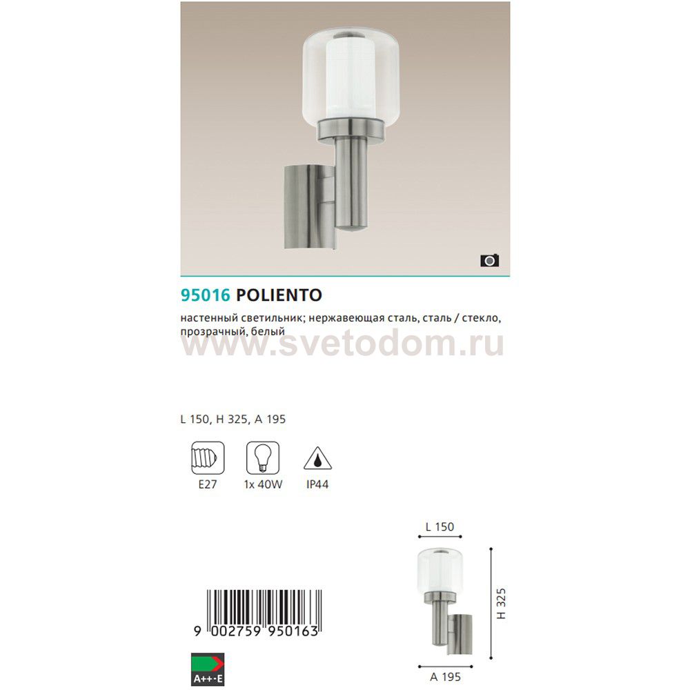 Обеспечение качественного уличного освещения – важная задача для владельцев коттеджей. Компания «Светодом» предлагает современные светильники, которые порадуют Вас отличным исполнением. В нашем каталоге представлена продукция известных производителей, пользующихся популярностью благодаря высокому качеству выпускаемых товаров. Уличный светильник Eglo 95016 не просто обеспечит качественное освещение, но и станет украшением Вашего участка. Модель выполнена из современных материалов и имеет влагозащитный корпус, благодаря которому ей не страшны осадки. Купить уличный светильник Eglo 95016, представленный в нашем каталоге, можно с помощью онлайн-формы для заказа. Чтобы задать имеющиеся вопросы, звоните нам по указанным телефонам.