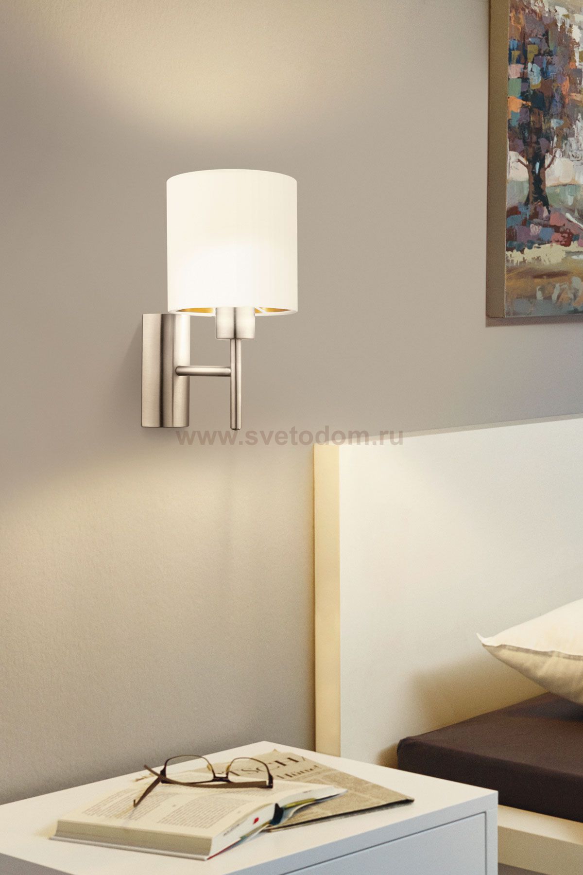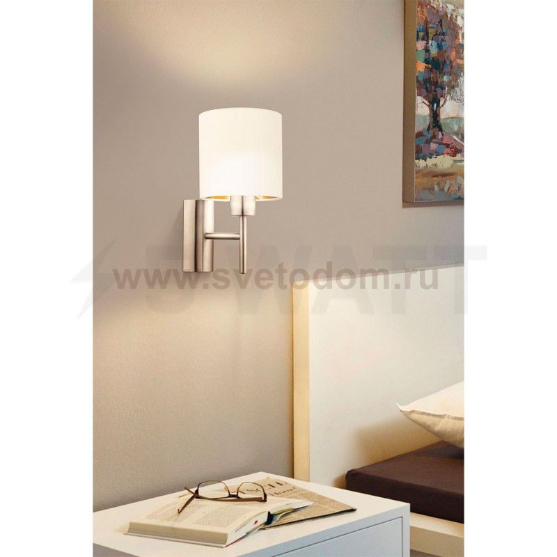 Бра PASTERI, 1х60W (E27), L145, H305, A195, никель матовый/текстиль, белый, медный применяется преимущественно в домашнем освещении с использованием стандартных выключателей и переключателей для сетей 220V.