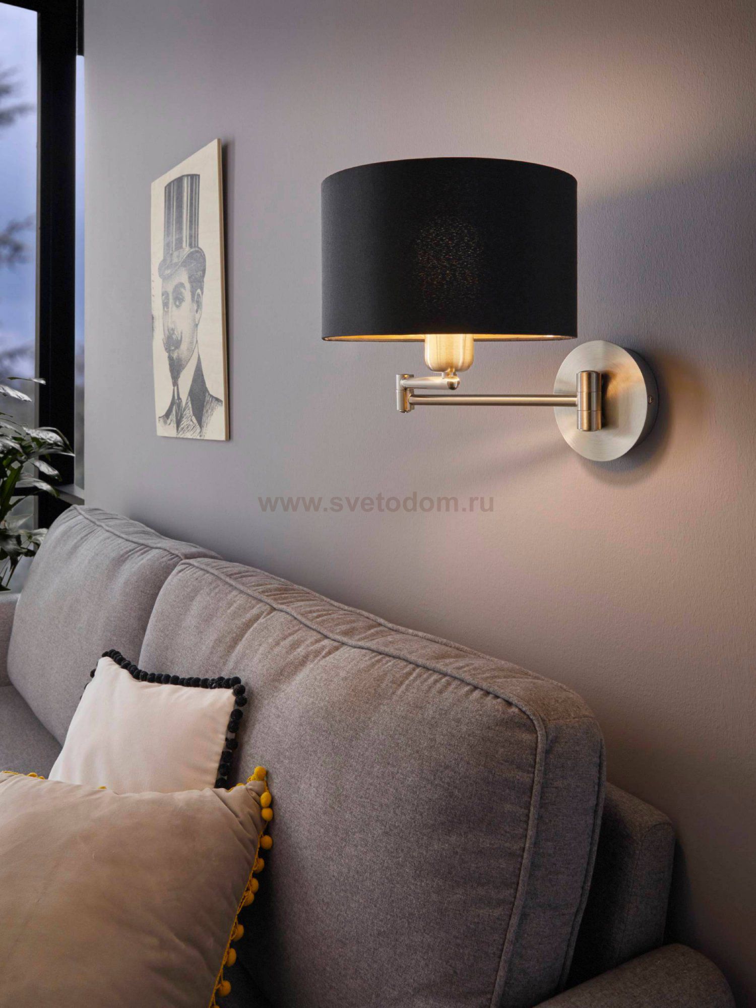 Бра MASERLO коленчатое, 1х60W (E27), ?230, H260, A595, никель матовый/текстиль, черный, золотой применяется преимущественно в домашнем освещении с использованием стандартных выключателей и переключателей для сетей 220V.