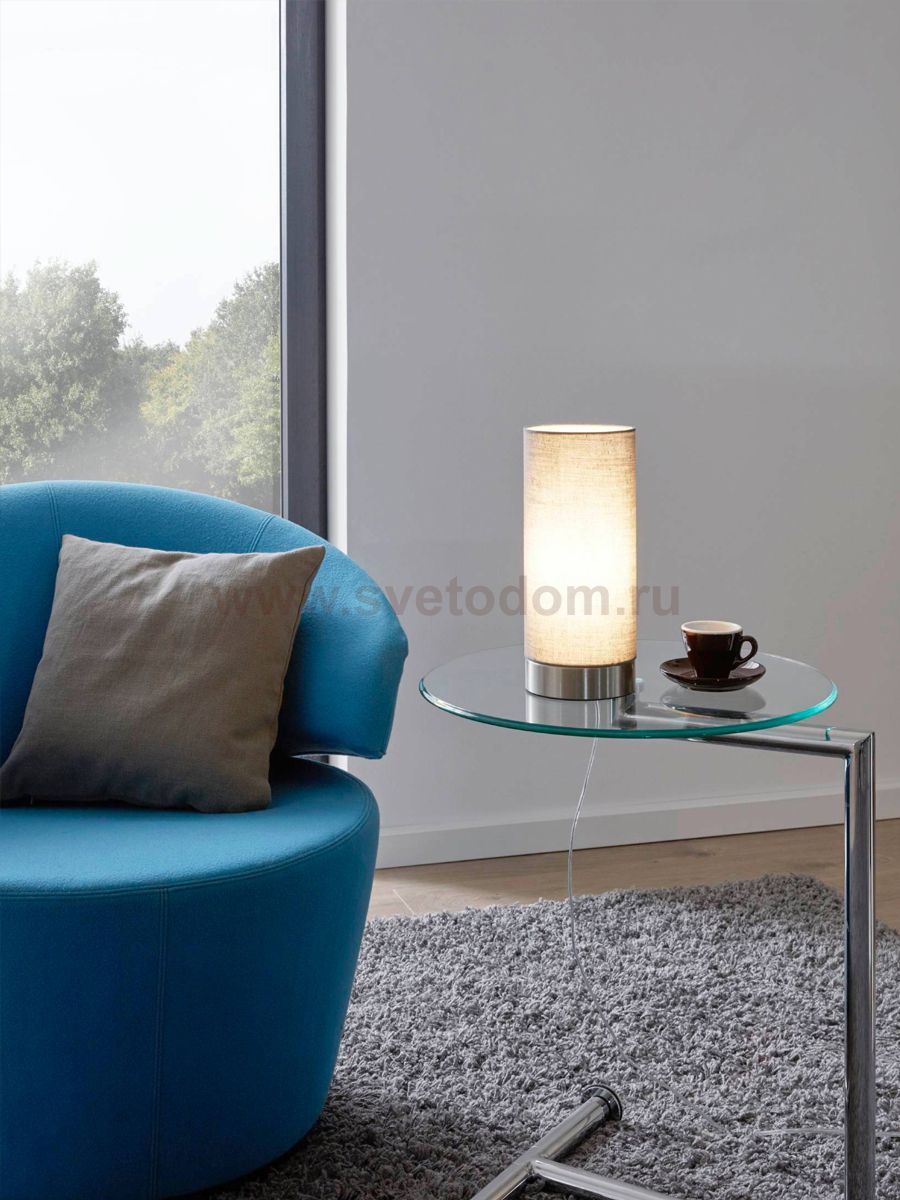 Настольная лампа PASTERI с сенсорн. димм., 1х40W (E27), ?120, H255, никель матовый/текстиль, серый применяется преимущественно в домашнем освещении с использованием стандартных выключателей и переключателей для сетей 220V.